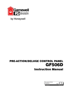 Installation, Operations, and Programming Manual for the Gamewell FCI GF506D, published in 2014. Document No: 53532, Rev: C2. Model GF506D. Mounting and wiring instructions, user operating guides, and system software setup.