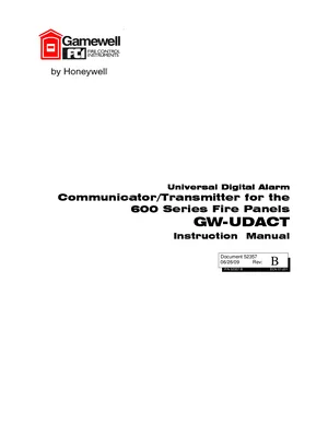 Installation, Operations, and Programming Manual for the Gamewell FCI GW-UDACT, published in 2009. Document No: 52357, Rev: B. 6 models including GW-UDACT, IF 602, IF 610 and 3 additional variants. Hardware installation, alarm/fault management, and advanced system configuration.