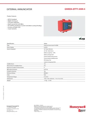 Datasheet for the Gamewell FCI GWBDA-BTTY-ANN-4, published in 2020. Document No: 9021-62068.00, Rev: 00. Model GWBDA-BTTY-ANN-4. Detailed technical specifications, electrical ratings, and agency listings.