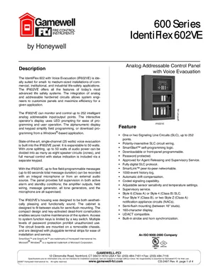 Datasheet for the Gamewell FCI IdentiFlex 602VE, published in 2007. Document No: CS-2497, Rev: A. 5 models including IF602VE, IF602VE-126, IF602VE-252 and 2 additional variants. Engineering specifications, wiring diagrams, and mounting dimensions.