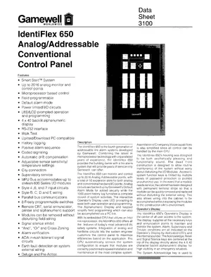 Datasheet for the Gamewell FCI IdentiFlex 650, published in 1998. Document No: 3100, Rev: revised. 13 models including IdentiFlex 650, IF654, IF658 and 10 additional variants. Detailed technical specifications, electrical ratings, and agency listings.