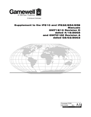 Installation and Programming Manual for the Gamewell FCI IF610 and IF632/654/658 Supplement, published in 2004. Document No: 52283, Rev: A1. 15 models including IF610, IF632, IF654 and 12 additional variants. System installation requirements and database programming workflows.