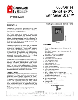 Datasheet for the Gamewell FCI IF610SS, published in 2007. Document No: CS-2491, Rev: A. 10 models including IF610SS, IF610SS-396, IF610SS-396XL and 7 additional variants. Product features, environmental operating limits, and compatibility data.