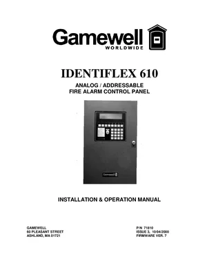 Installation, Operations, and Programming Manual for the Gamewell FCI IF 610, published in 2000. Document No: 71810, Rev: 3. 21 models including IF 610, IF 610-126, IF 610-252 and 18 additional variants. Hardware installation, alarm/fault management, and advanced system configuration.