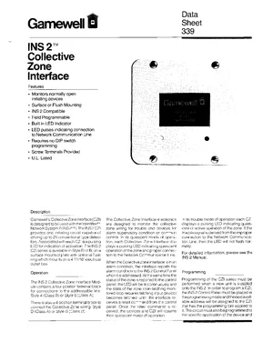 Datasheet for the Gamewell FCI INS 2 Collective Zone Interface, published in 1993. Document No: 339, Rev: 3/93. 22 models including INS 2 CZI, 30771-10, 30771-12 and 19 additional variants. Detailed technical specifications, electrical ratings, and agency listings.