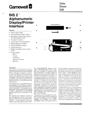 Datasheet for the Gamewell FCI INS 2 Display/Printer Interface, published in 1993. Document No: 336, Rev: 11/93. 8 models including INS 2, 30773, 30773-01 and 5 additional variants. Detailed technical specifications, electrical ratings, and agency listings.
