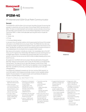 Datasheet for the Gamewell FCI IPGSM-4G, published in 2017. Document No: 9021-60780, Rev: B. 7 models including IPGSM-4G, 7626-50HC, 7626-25HC and 4 additional variants. Product features, environmental operating limits, and compatibility data.