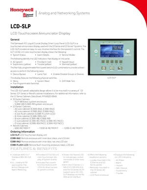 Datasheet for the Gamewell FCI LCD-SLP, published in 2017. Document No: 9021-60782, Rev: F. 21 models including LCD-SLP, E3BB-BA2, E3BB-RA2 and 18 additional variants. Engineering specifications, wiring diagrams, and mounting dimensions.