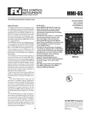 Datasheet for the Gamewell FCI MMI-6S, published in 2002. Document No: 9020-0547, Rev: 1.1. 7 models including MMI-6S, BB-2, BB-6 and 4 additional variants. Detailed technical specifications, electrical ratings, and agency listings.