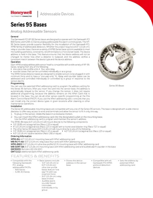 Datasheet for the Gamewell FCI Series 95 Bases, published in 2019. Document No: CS-2048, Rev: E. 4 models including XP95-B4, XP95-B6EZ, MB-RLYT-AA and 1 additional variants. Detailed technical specifications, electrical ratings, and agency listings.