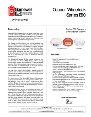 Datasheet for the Gamewell FCI Series E60 Speakers and Speaker Strobes, published in 2009. Document No: 9021-60128, Rev: A. 9 models including E60, E60-R, E60-W and 6 additional variants. Detailed technical specifications, electrical ratings, and agency listings.