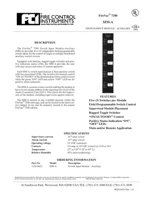 Datasheet for the Gamewell FCI SIM-A, published in 1998. Document No: 9020-0431, Rev: 1.3. Model SIM-A. Engineering specifications, wiring diagrams, and mounting dimensions.