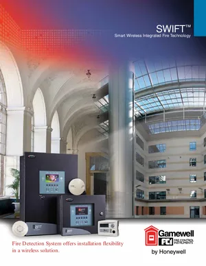 Brochure for the Gamewell FCI SWIFT Smart Wireless Technology, published in 2014. Document No: 9021-60768. 9 models including WSD-P, WSD-ACCLIMATE, WTD-RH and 6 additional variants. Product highlights, key features, and application overview.