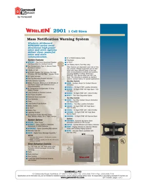 Datasheet for the Gamewell FCI Whelen 2901 Series, published in 2006. Document No: GF11694B, Rev: B. 22 models including 2901, WPS2901, WPS2900 and 19 additional variants. Detailed technical specifications, electrical ratings, and agency listings.
