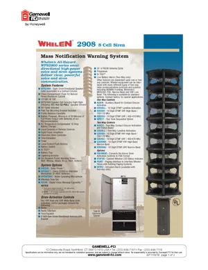 Datasheet for the Gamewell FCI Whelen 2908 Series, published in 2006. Document No: GF11691B, Rev: B. 22 models including 2908, WPS2908, WPS2900 and 19 additional variants. Product features, environmental operating limits, and compatibility data.