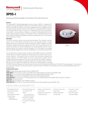 Datasheet for the Gamewell FCI XP95-I, published in 2019. Document No: CS-2050, Rev: E. 12 models including XP95-I, XP95-B6EZ, XP95-B4 and 9 additional variants. Engineering specifications, wiring diagrams, and mounting dimensions.
