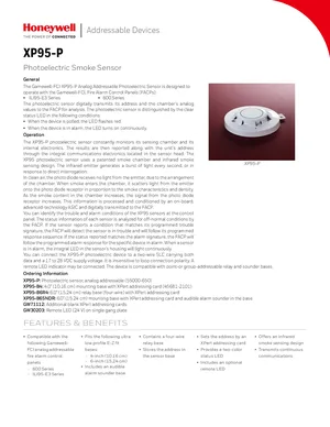 Datasheet for the Gamewell FCI XP95-P, published in 2019. Document No: CS-2054, Rev: D. 9 models including XP95-P, XP95-B4, XP95-B6R4 and 6 additional variants. Detailed technical specifications, electrical ratings, and agency listings.