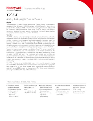 Datasheet for the Gamewell FCI XP95-T, published in 2019. Document No: CS-2055, Rev: D. Model XP95-T. Detailed technical specifications, electrical ratings, and agency listings.