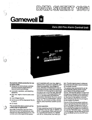 Installation and Operations Manual for the Gamewell FCI Zans 200, published in 1982. Document No: 1651, Rev: Issue 2. 30 models including Zans 200, M1755-1, M1755-4 and 27 additional variants. Complete setup guide and operational workflows.