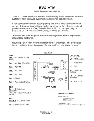 Installation Manual for the Hochiki EVX-ATM. Document No: 1-5028, Rev: D. 4 models including EVX-ATM, EVX-25, EVX-RM and 1 additional variants. Physical installation guide, backbox dimensions, and cabling specifications.