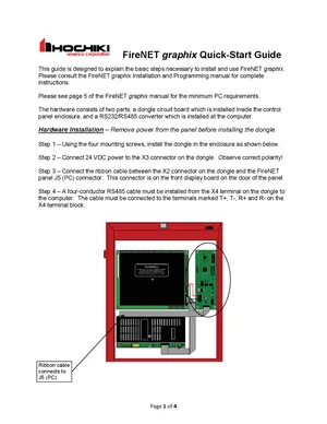 Quick Start for the Hochiki FireNET graphix, published in 2008. Rev: 0.2. Model FireNET graphix. Rapid deployment guide, safety warnings, and initial testing.