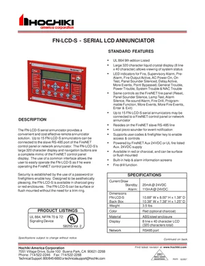 Datasheet for the Hochiki FN-LCD-S, published in 2007. Document No: F0070. Models FN-LCD-S and FN-LCD-N. Engineering specifications, wiring diagrams, and mounting dimensions.