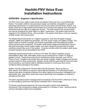 Installation and Operations Manual for the Hochiki FNV. Document No: FNV-5010, Rev: D. 22 models including FNV, FNV-25, FNV-50 and 19 additional variants. System installation procedures and daily operating instructions.