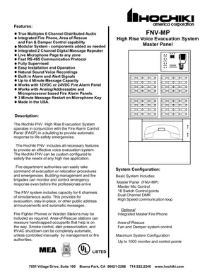 Datasheet for the Hochiki FNV-MP. 17 models including FNV-MP, FNV-MP16, FNV-MP32 and 14 additional variants. Detailed technical specifications, electrical ratings, and agency listings.