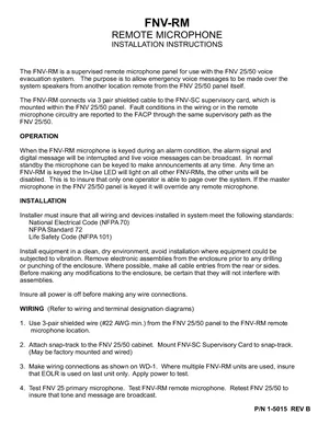 Installation Manual for the Hochiki FNV-RM. Document No: 1-5015, Rev: B. 4 models including FNV-RM, FNV-SC, FNV 25/50 and 1 additional variants. Hardware installation, terminal connections, and environmental requirements.