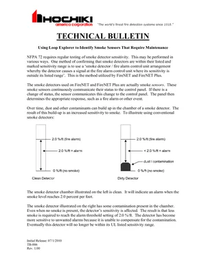 Technical Reference Manual for the Hochiki Loop Explorer Sensor Maintenance, published in 2010. Document No: TB-006, Rev: 1.00. 7 models including FireNET, FireNET Plus, ALG-V and 4 additional variants. System architecture, detailed circuit analysis, and engineering specifications.