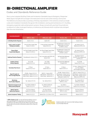 Manual for the Honeywell BDA Codes and Standards Reference Guide, published in 2019. Document No: HW_SS_BDA-Reference, Rev: 02. Model BDA. Capabilities, specifications summary, and usage notes.