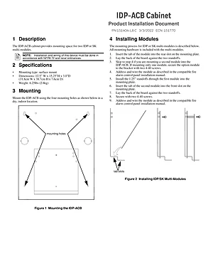 Installation Manual for the Honeywell IDP-ACB Cabinet, published in 2022. Document No: 151404-L8, Rev: C. Model IDP-ACB. Hardware installation, terminal connections, and environmental requirements.