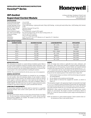 Installation Manual for the Honeywell IDP-Control, published in 2021. Document No: I56-3600-006, Rev: 04-21. Model IDP-Control. Hardware installation, terminal connections, and environmental requirements.