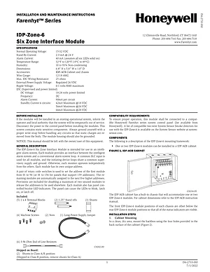 Installation Manual for the Honeywell IDP-Zone-6, published in 2022. Document No: I56-2733-010. Model IDP-Zone-6. Hardware installation, terminal connections, and environmental requirements.