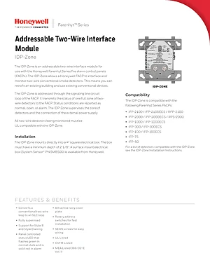 Datasheet for the Honeywell IDP-Zone, published in 2017. Document No: 350292, Rev: H. Model IDP-Zone. Engineering specifications, wiring diagrams, and mounting dimensions.