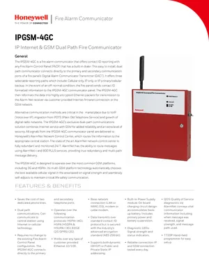 Datasheet for the Honeywell IPGSM-4GC (Canadian), published in 2017. Document No: DH-60771, Rev: D. 11 models including IPGSM-4GC, IPGSM-4G, HFS-659EN and 8 additional variants. Detailed technical specifications, electrical ratings, and agency listings.