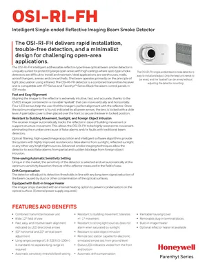 Datasheet for the Honeywell OSI-RI-FH, published in 2020. Document No: FH-61051, Rev: C. 11 models including OSI-RI-FH, OSP-002, OSP-004 and 8 additional variants. Detailed technical specifications, electrical ratings, and agency listings.