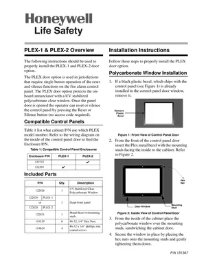 Installation Manual for the Honeywell PLEX-1 and PLEX-2, published in 2005. Document No: 151347, Rev: B. Models PLEX-1 and PLEX-2. Hardware installation, terminal connections, and environmental requirements.