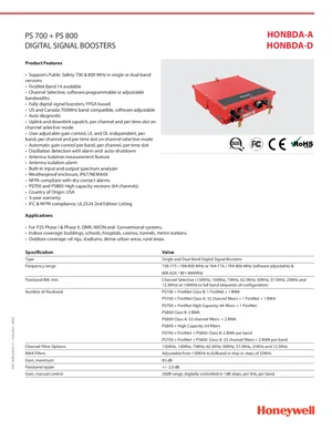 Datasheet for the Honeywell PS 700 + PS 800, published in 2021. Document No: DOC HON-62053.11, Rev: 11. Models HONBDA-A and HONBDA-D. Product features, environmental operating limits, and compatibility data.