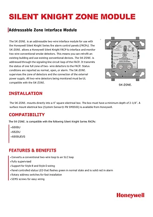 Datasheet for the Honeywell SK-ZONE, published in 2025. Model SK-ZONE. Engineering specifications, wiring diagrams, and mounting dimensions.