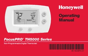 Operations Manual for the Honeywell TH5000 Series, published in 2009. Document No: 69-1923EFS-01, Rev: 01. Models TH5110D, TH5220D and TH5320U. User interface controls, event handling, and routine maintenance tasks.