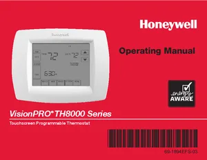 Operations Manual for the Honeywell VisionPRO TH8000 Series, published in 2011. Document No: 69-1894EFS-03, Rev: 03-11. Models TH8110U, TH8320U and TH8321U. Operator instructions, emergency procedures, and system testing guides.