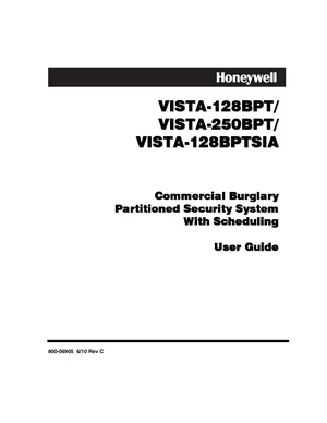 User Guide for the Honeywell VISTA-128BPT and VISTA-250BPT, published in 2010. Document No: 800-06905, Rev: C. 5 models including VISTA-128BPT, VISTA-250BPT, VISTA-128BPTSIA and 2 additional variants. End-user operating instructions, system navigation, and daily operation procedures.