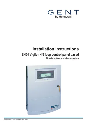 Installation Manual for the Honeywell Gent Vigilon, published in 2010. Document No: 4188-875, Rev: 5. 114 models including Vigilon, VIG1-24, VIG1-72 and 111 additional variants. Physical installation guide, backbox dimensions, and cabling specifications.