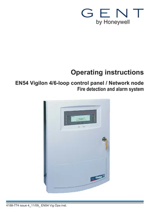 Operating Instructions for the Honeywell Gent Vigilon, published in 2009. Document No: 4188-774, Rev: 4. Models Vigilon, VIG1-24 and VIG1-72. Hardware installation, alarm/fault management, and advanced system configuration.