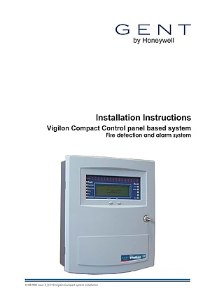 Installation Manual for the Honeywell Gent Vigilon Compact Control Panel, published in 2010. Document No: 4188-900, Rev: 3. Model Vigilon Compact. Hardware installation, terminal connections, and environmental requirements.