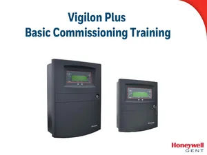 Manual for the Honeywell Gent Vigilon Plus Basic Commissioning Training, published in 2017. 18 models including Vigilon Plus, Vigilon Plus 24, Vigilon Plus 72 and 15 additional variants. Component descriptions, indicators and controls, and user interactions.