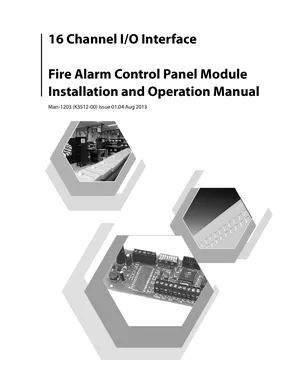 Installation and Operations Manual for the Kentec 16 Channel I/O Interface, published in 2013. Document No: Man-1203, Rev: E01.04. Model K1171-00. Complete setup guide and operational workflows.