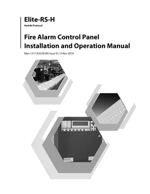 Installation, Operations, and Programming Manual for the Kentec Elite-RS-H, published in 2018. Document No: Man-1217, Rev: E01.15. 40 models including K0810, K0830, K0815 and 37 additional variants. Hardware installation, alarm/fault management, and advanced system configuration.
