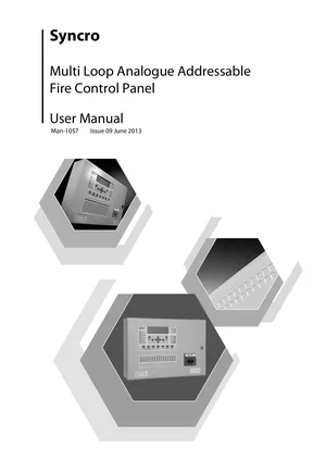 User Guide for the Kentec Syncro, published in 2013. Document No: Man-1057, Rev: Issue 09. Model Syncro. End-user operating instructions, system navigation, and daily operation procedures.